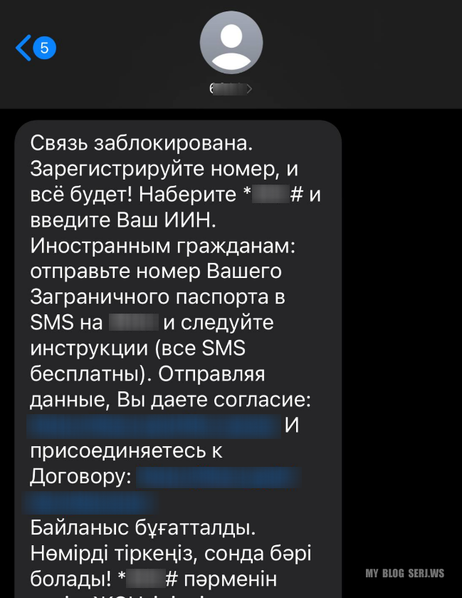 Первым шагом был приобретён подержанный телефон и новая сим (далее — подставной номер). После установки сим и включения устройства пришло SMS с требованием зарегистрировать номер.